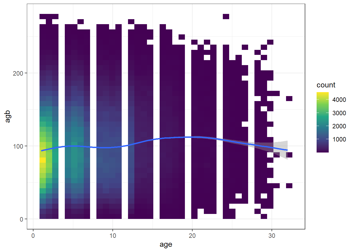 ggplot(df_age, aes(x = age, y = agb)) +